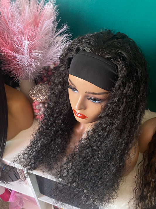 -24” Deep Wave HEADBAND Wig -100% Human Hair -Combs inside - adjustable snap band to...
