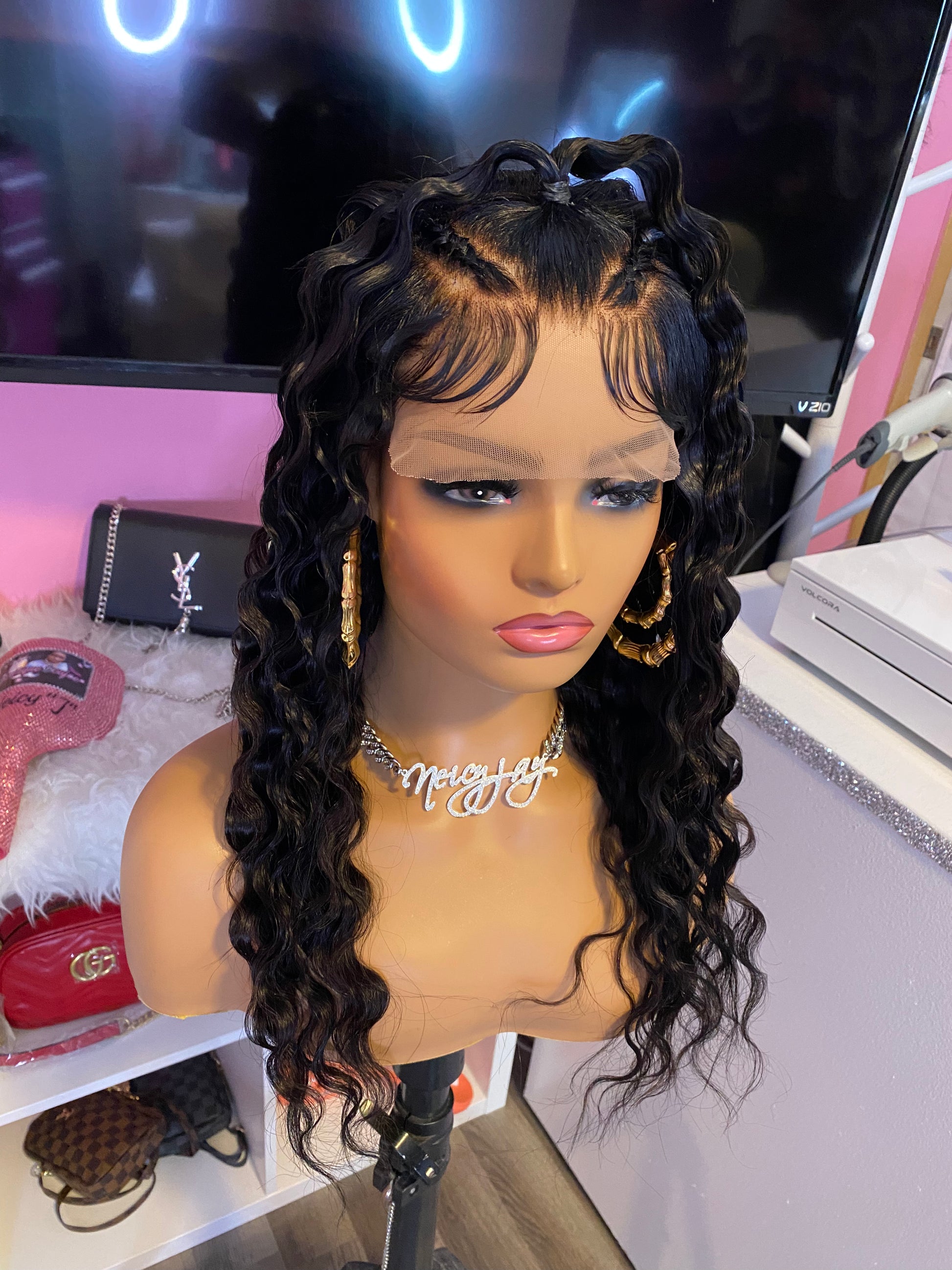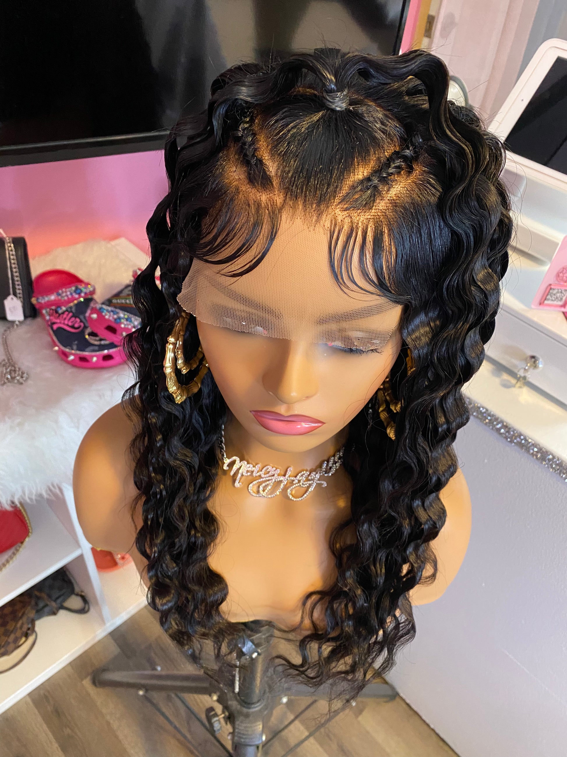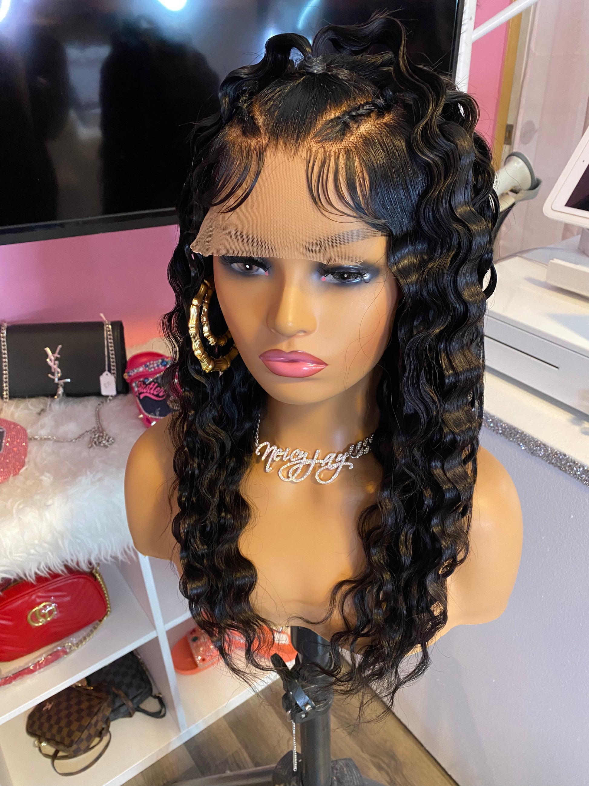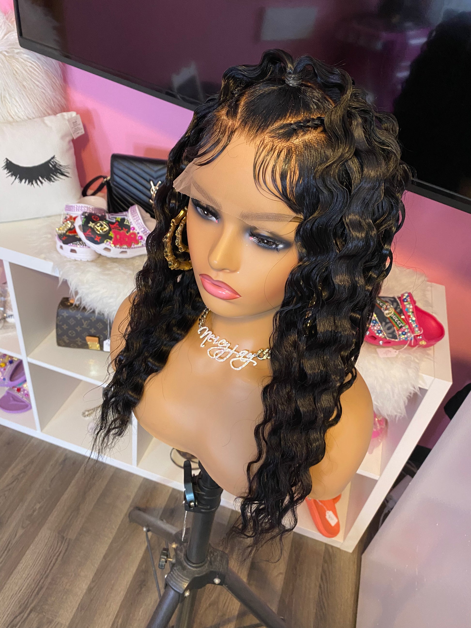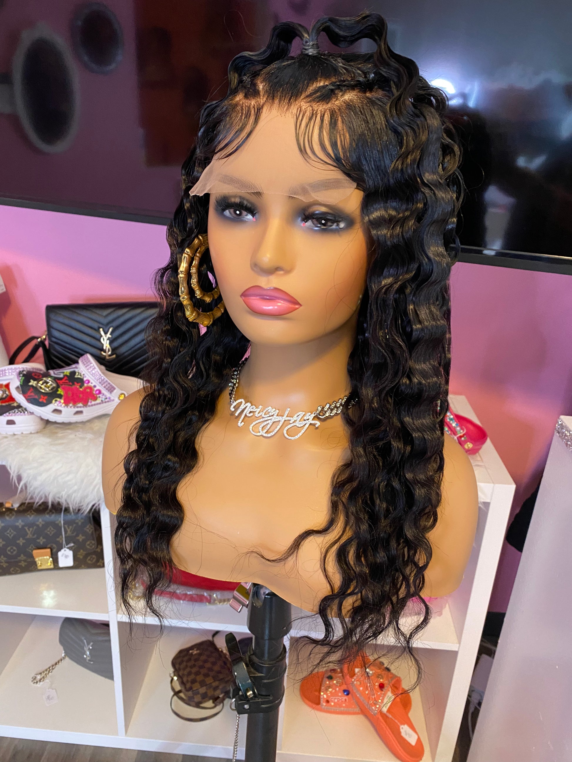 Consider this ONE of the biggest investments that you'll make in your life!! <3 She is wearing 18” Straight 100% Human Hair that can be Straightened, Curled or Dyed. The original texture of this wig is Straight. Feel free to shampoo her and change up on the style if/when desired. You can actually FEEL the quality in the hair. She has a 5x5 Closure and the knots have been bleached and plucked to mimic a natural hairline. The inside construction of this machine made wig has an adjustable elastic band already added with combs for a more snug fit or for those with a smaller head size or you would like to wear it completely GLUE LESS! Boujee wigs are made on a Stretchy Dome Cap on a 22' canvas block head (medium head size). Yes, Boujee wigs are machine stitched. Swiss Lace has not been cut so that You or your Professional Stylist can customize your own hairline. Boujee Units will last for up to 2 years or longer with proper care. So, INVEST IN YOUR UNITS LADIES AND GENTLEMEN with confidence knowing that all the work has been done for you. All you have to do is pop her on and go girl :)!!